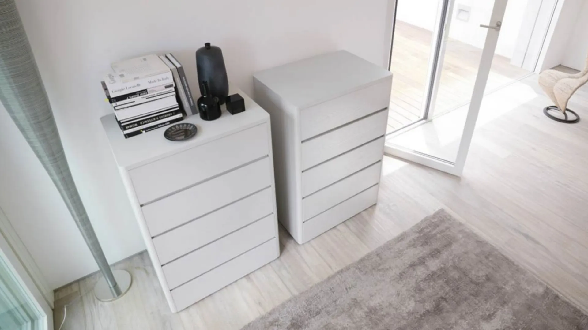 This model of container Soft Caccaro è the best solution in a modern style interior. The bed groups must be chosen respecting a certain continuity; style and color with the bed and the remaining furnishings. Here proposed in matt lacquer, the Soft Caccaro container is added to the different products for the sleeping area of the Caccaro brand. In our store you will find bed groups, beds, wardrobes and every piece of furniture to design the rest area as you wish. The model of matt lacquered bed groups proposed here by Caccaro is characterized by qualityà of materials and for an elegant design.