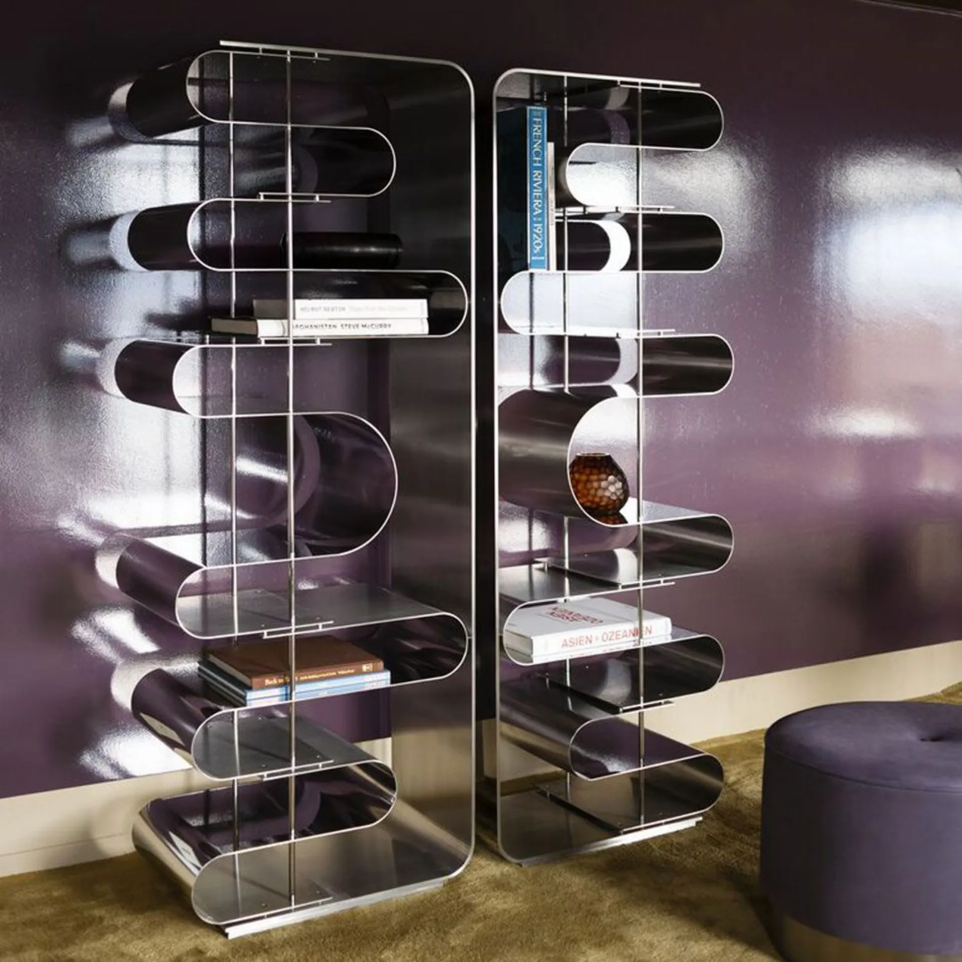 Various types of furniture are placed in the home, which differ mainly according to the destination room and their practical and aesthetic qualities. Keeping the living area tidy is not the only task of the design bookcases we offer you: they furnish the spaces enriching their aesthetics. A bookcase will prove to be an essential presence in the living room: it allows us to recreate a well-studied and continuous space, as well as of great aesthetic value. Among the producers of high-quality bookcases, we find certainly the brand Baxter, which also offers metal room dividers.