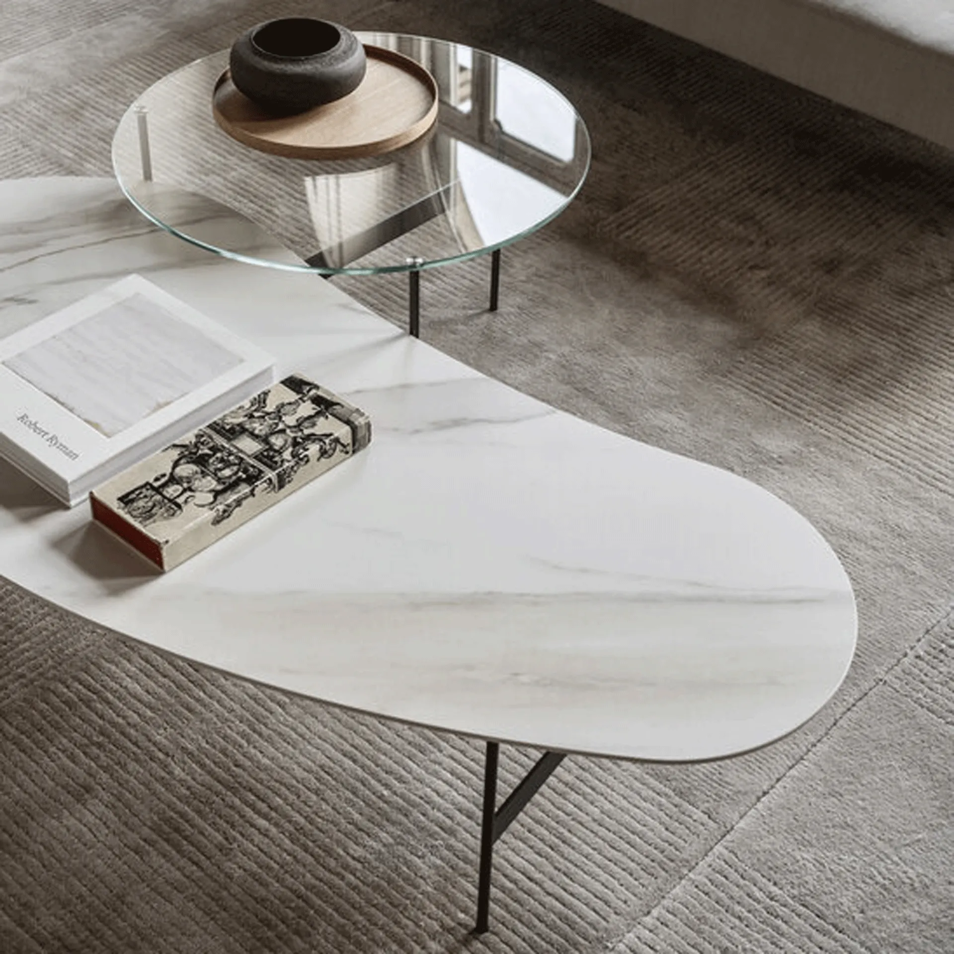 Particularly versatile and multifunctional, the coffee tables respond to disparate functions: they complete the practical qualities and aesthetic value of the room. The Formiche B&B coffee table in the photo will give personality and charm to a room furnished with furniture and accessories for interiors. The charming furnishing compositions of the B&B Italia brand enhance the interiors by recreating peculiar furnishing atmospheres.