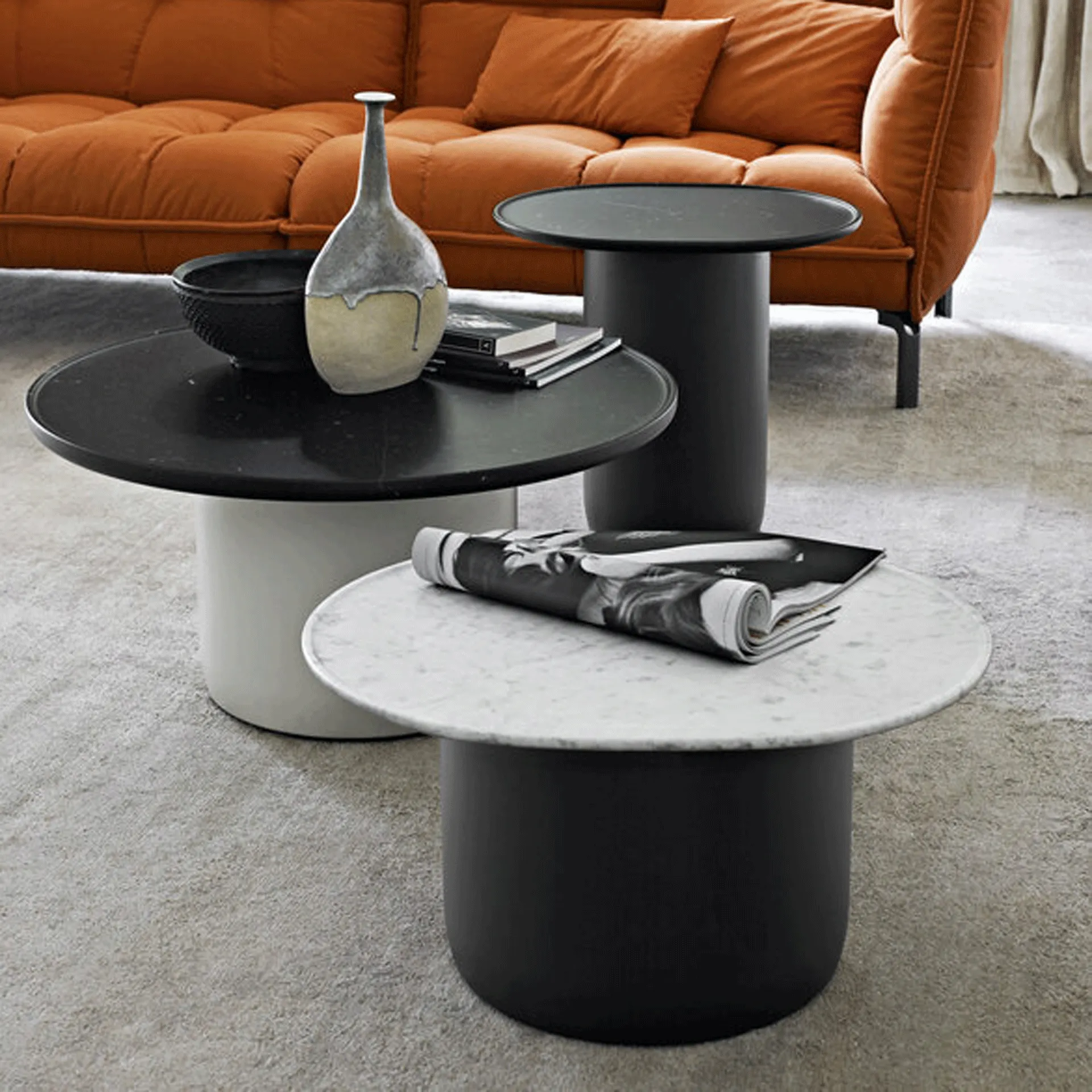 Class and functionality characterize the multiple solutions of the brand, including this Button Tables B&B coffee table solution with a strong decorative impact. To best enrich indoor spaces, a detail is enough to be obtained by inserting some tables with a unique design among the remaining pieces of furniture. From the bedroom to the living room, these accessory elements are essential objects to best complete the practical qualities and aesthetic value of the rooms.