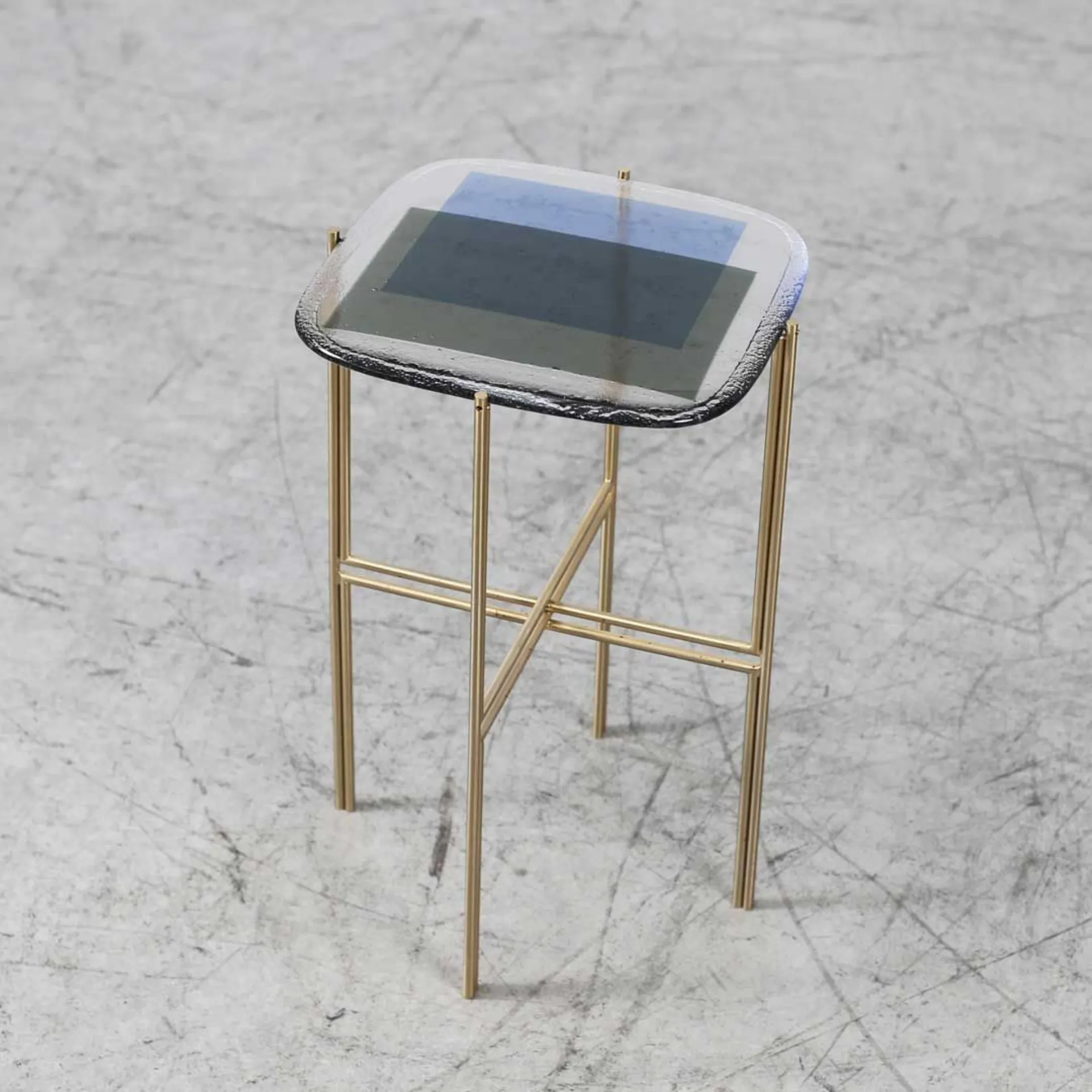 Product: Tetris Coffee Table Brand: Baxter Coffee table model Tetris in 33x33 h.51cm dimensions in Grey and Blue frosted glass with Satin Brass metal structure.