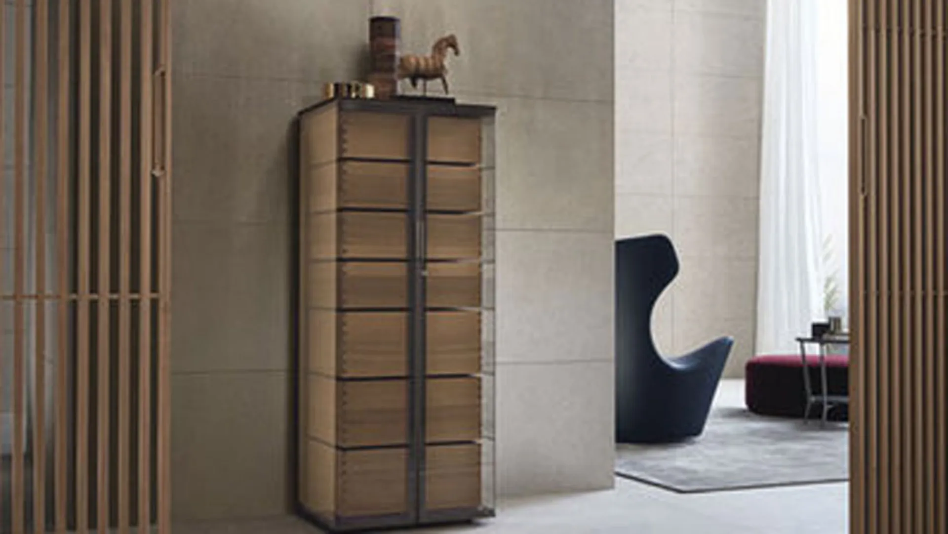 The modern style proposal of furniture combines aesthetic linearity and safety, to create compositional solutions that are pleasing to the eye and functional. Ala Rimadesio storage systems meet the needs of contemporary homes. Ala Rimadesio storage systems furnish the rest and socialization environment. Living rooms are a home environment that is so frequented and loved by all of us. This versatile furniture solution manages to contain, but also embellish the living room. This product belongs to the Rimadesio modern style furniture series and will fully satisfy your expectations. Here you will find the qualities that characterize the Ala Rimadesio storage systems in wood among the rich Rimadesio series. Living room furnishings must be comfortable, to ensure the necessary comfort for those who live in the room and for those who will be welcomed. The living room requires precise planning and its furnishings must be arranged so that the furniture and objects respond to the various functions for which they are intended.