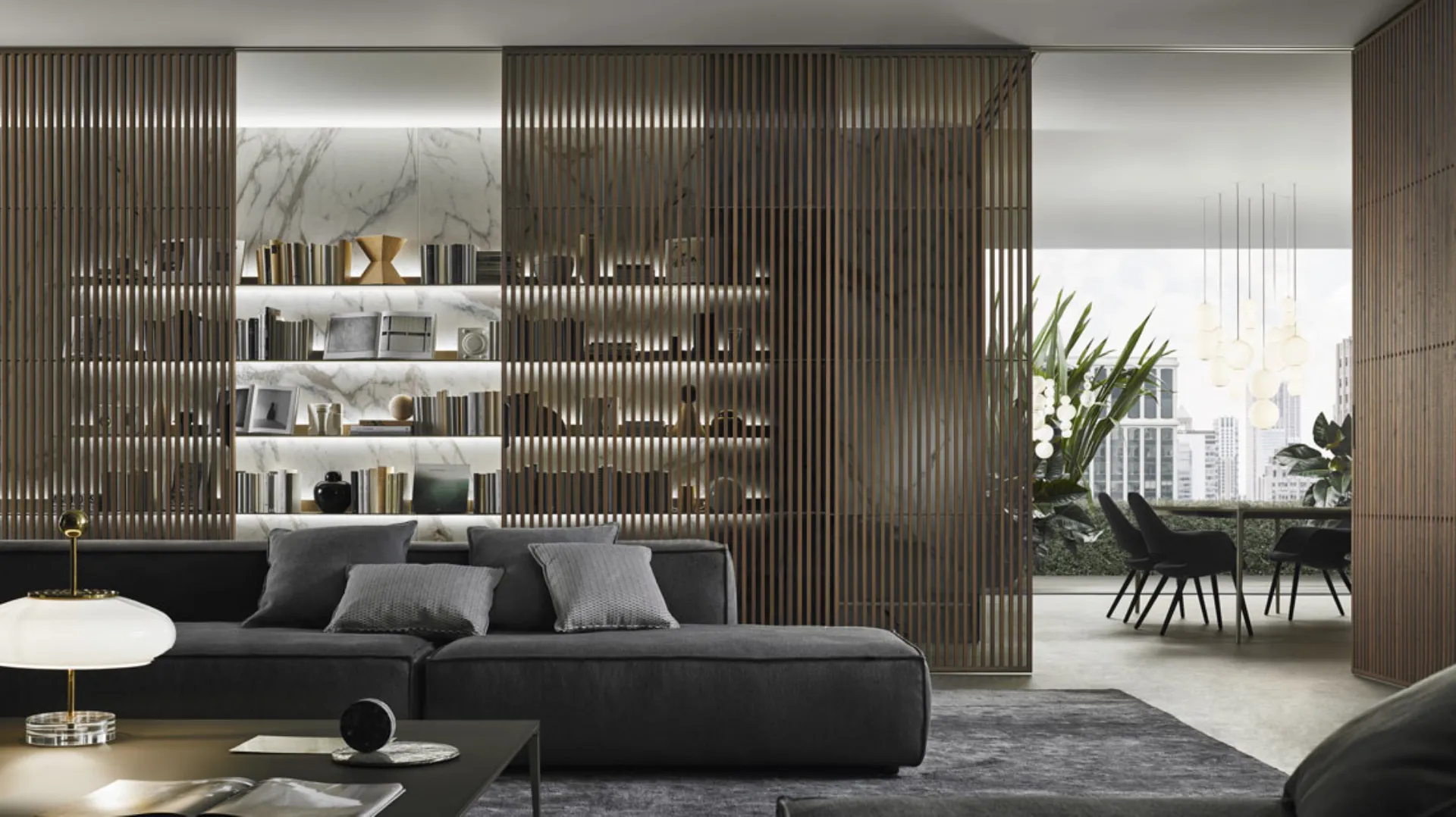 The Rimadesio Sail sliding door stands out for its refinement and technology and finds space in modern homes. Rimadesio with its sliding doors for interiors demonstrates a deep attention to detail and the indispensable sensitivityà towards trends. Rimadesio's lines of sliding doors are characterized by the varietyà of possible solutions in terms of finishes and aesthetic content. The Rimadesio Sail wooden sliding door combines technology and aesthetics in a stylish door.