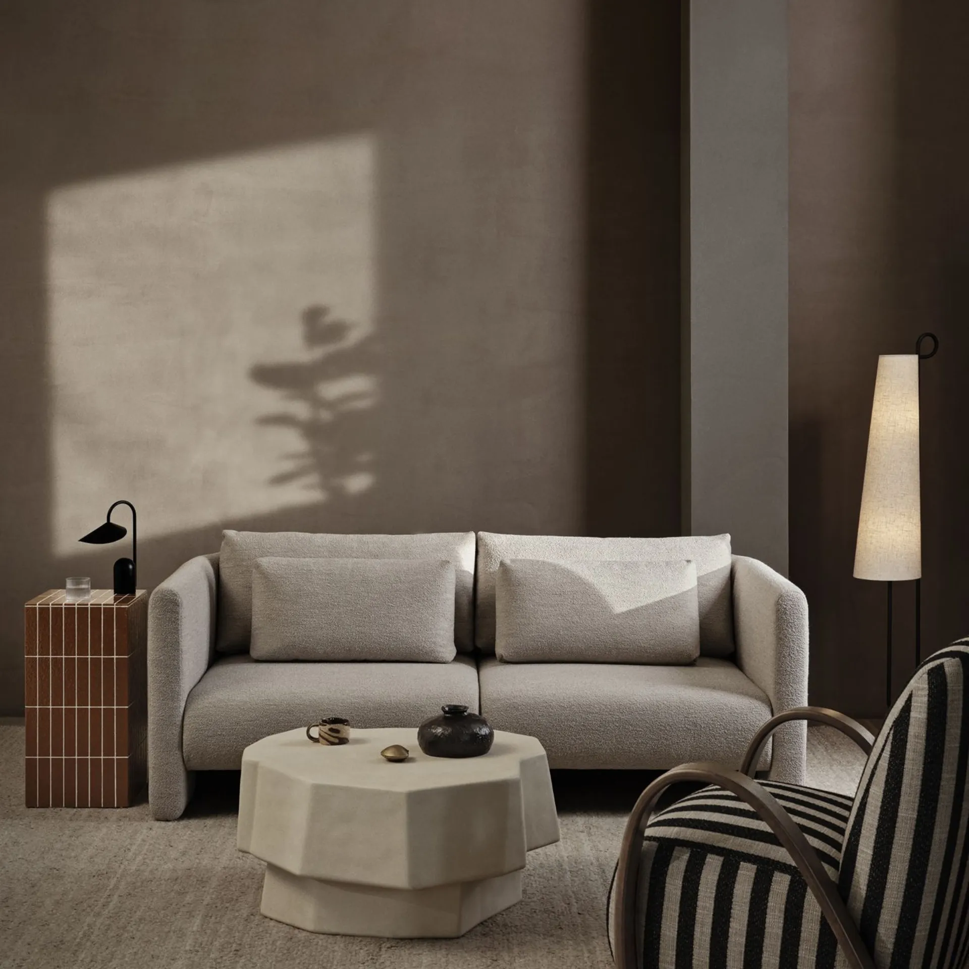At our store, with the advice of our store managers and floor interior lamps, you will know how to place the light points and which ones to choose. In our store, we offer the best solutions that the brand produces for those who want to illuminate their home perfectly with practicality and design. This proposal is perfect for you if you want to enrich your living spaces, the most original proposals from ferm living are waiting for you in the showroom. Interior design lighting contributes to diffuse light in a room or enhance a corner of the house, an object in detail or a complement. The Ancora Floor lamp by ferm living in fabric will characterize with style every room you have, enhancing a design setting of great charm.