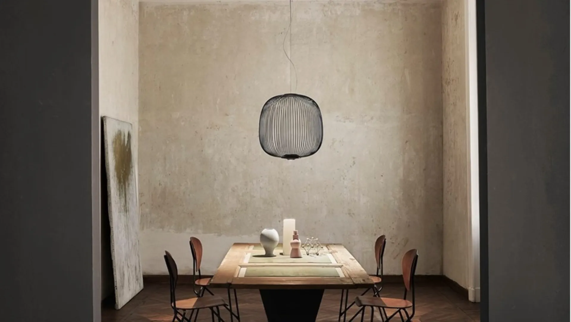 A creation of 2014, daughter of the design studio Garcí in Cumini, Spokes Foscarini è a suspension lamp inspired by the spokes of the bicycle wheel, as the name itself suggests. The soft shapes and the light volume allow the light to pass through and project onto the walls of the rooms, creating magical plays of light and shadow.