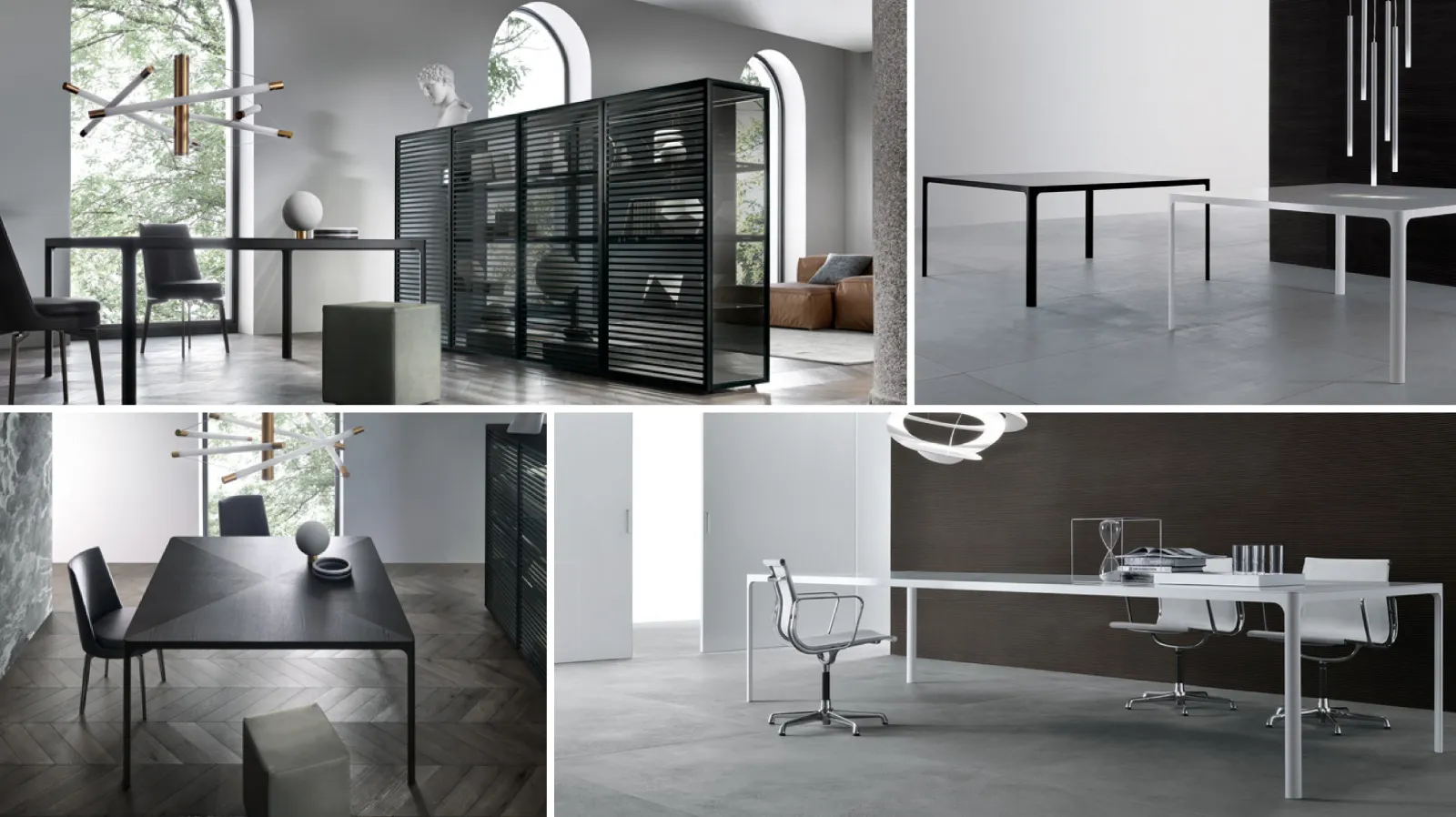 The choice of tables must take into account the context of the environment to be furnished. The excellence of the materials and the technology of the production processes make this solution of fixed office tables the optimal solution. With the Rimadesio Flat table with glass top we have the possibilityà to tastefully embellish our spaces. The tables are the fulcrum of conviviality: people gather around the table to have lunch and chat.