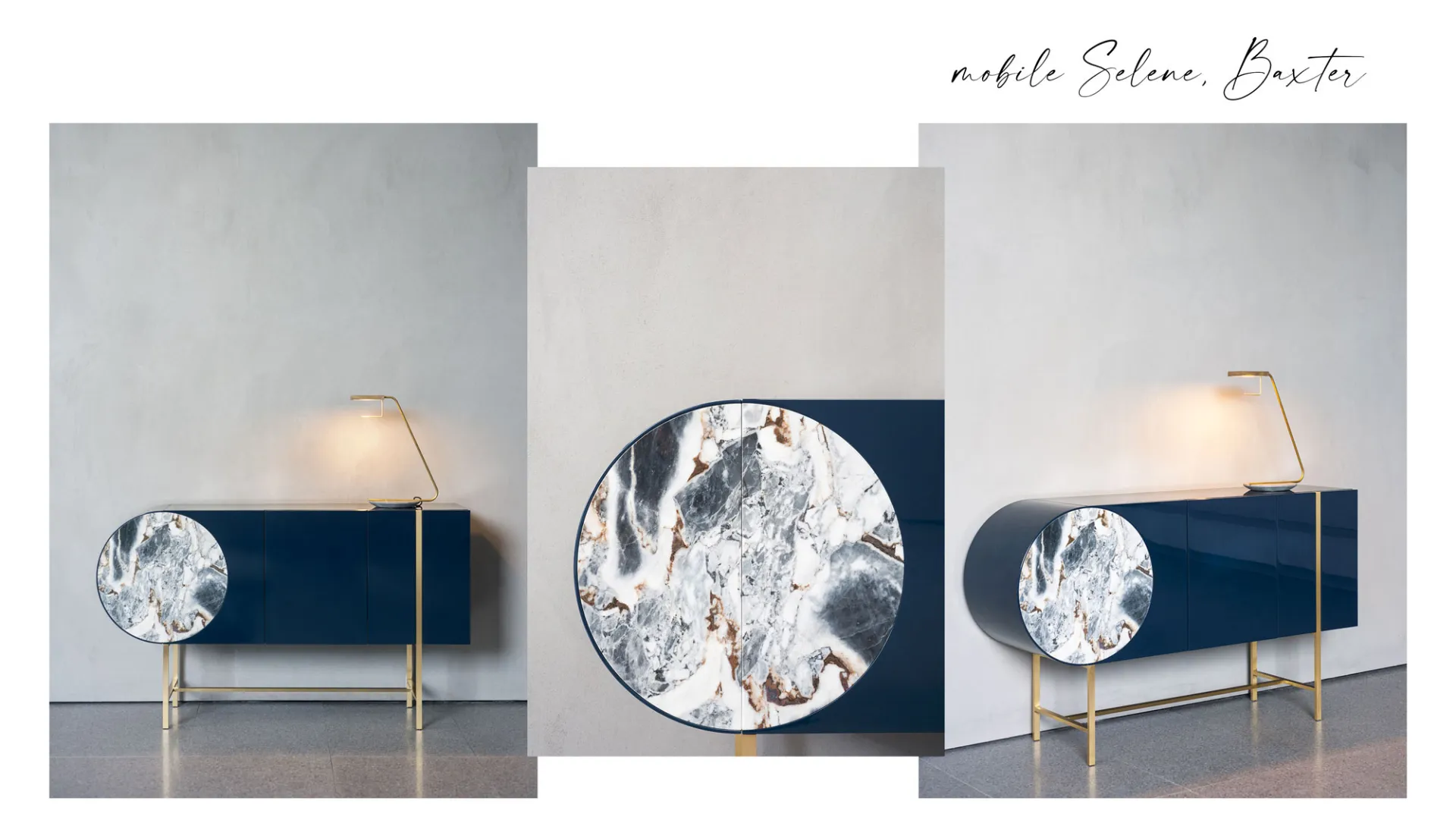 A unique piece of furniture with a contemporary character that embellishes the space, giving the whole an inimitable appeal. The version we propose for the month of April is the one in blue lacquer and glossy Ocean Storm marble.