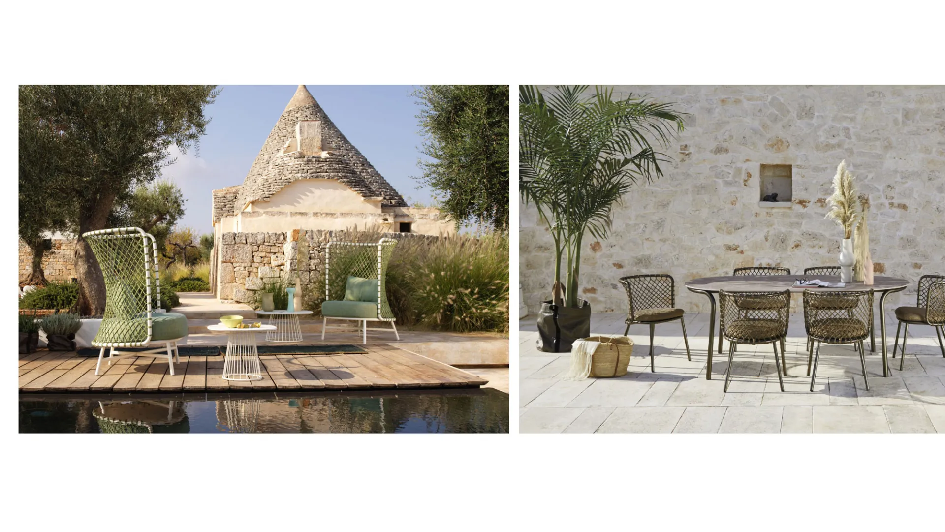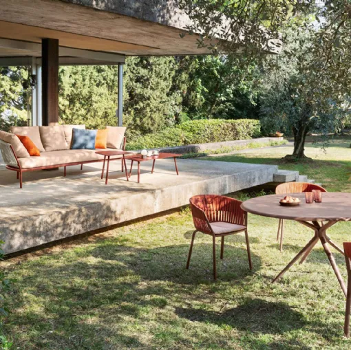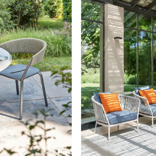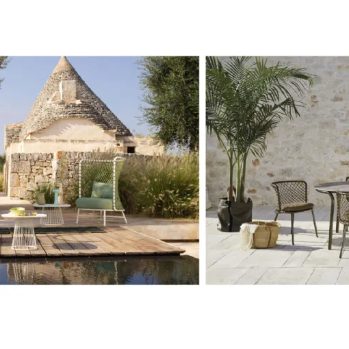 Roberti Rattan was born as a family business in 1959 and immediately ranked among the best manufacturers of outdoor furniture. Its collections are always avant-garde in design and always adhering to the most current stylistic trends in shapes and materials. The latest collection of the company is Charme created by Antonio De Marco, a collection of innovative elegance, with a light and enveloping design, where the rope is emphasized in the backrests of chairs, armchairs, sofas, and rocking chairs and the geometry created by the different weaving tension adapts naturally to the body, offering an incredible feeling of comfort.