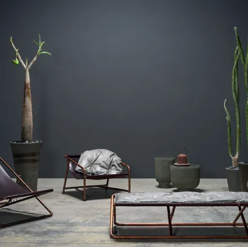 Baxter in collaboration with the designer Paola Navone has created the Rimini collection dedicated entirely to outdoor spaces. Strong character and leather specially treated to be used outdoors.