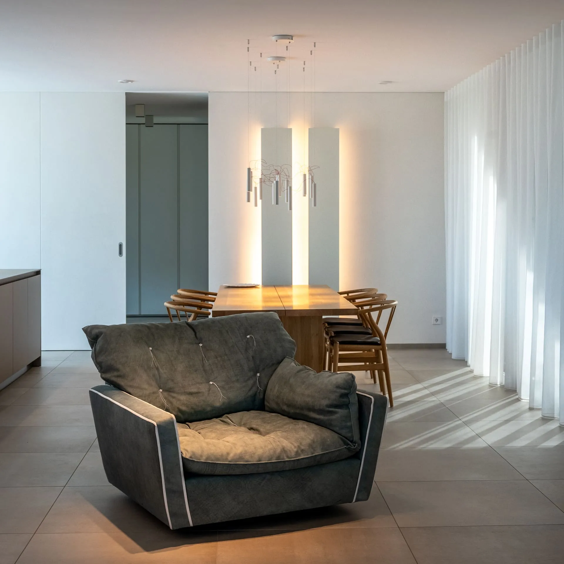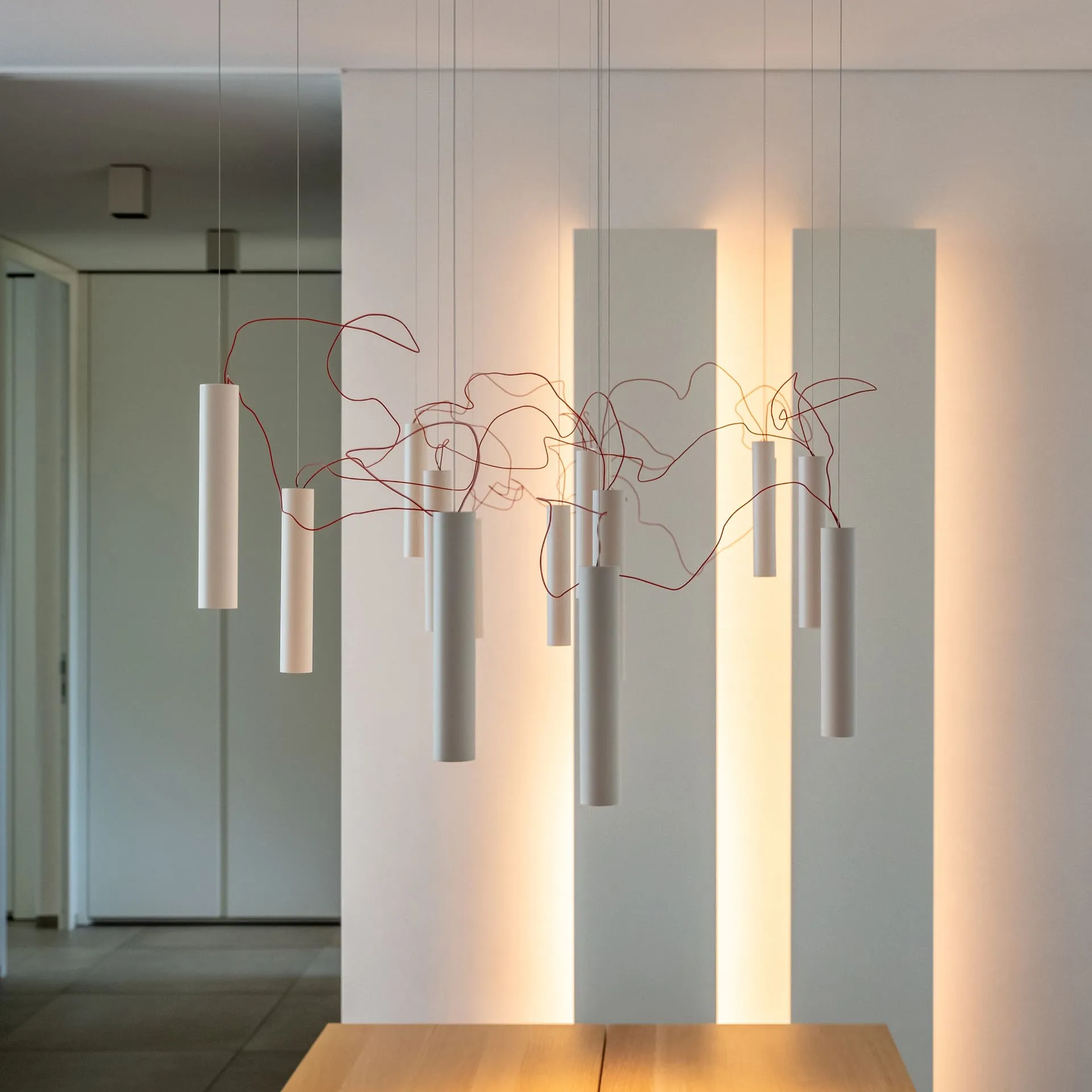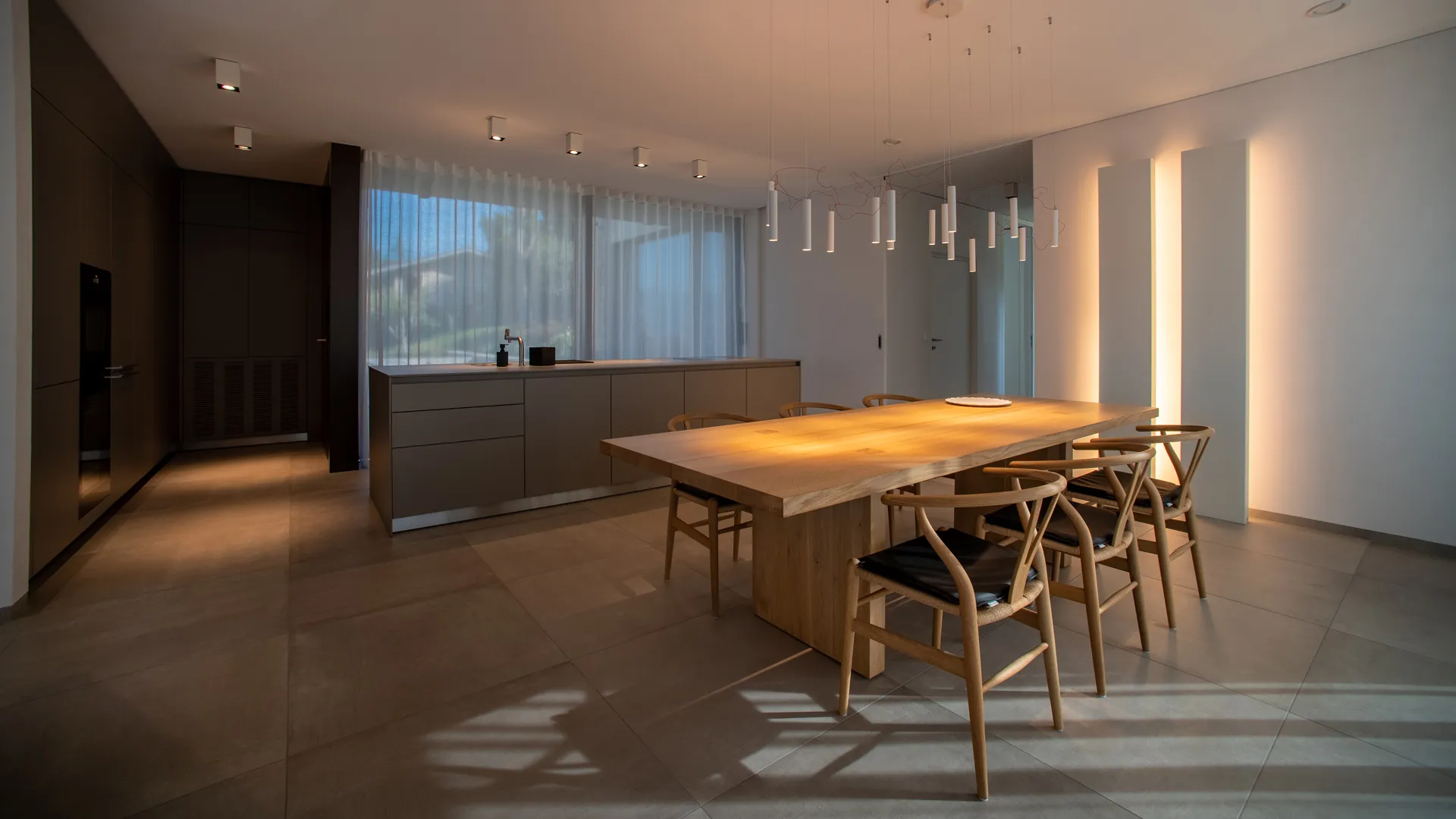 Riva 1920 table CH24 Carl Hansen chairs Simbiosi lamps and Davide Groppi Banner