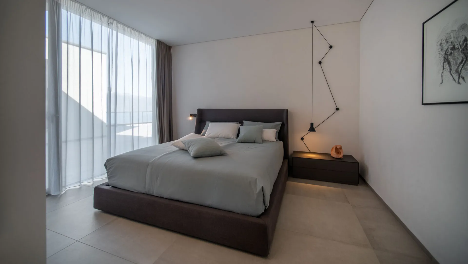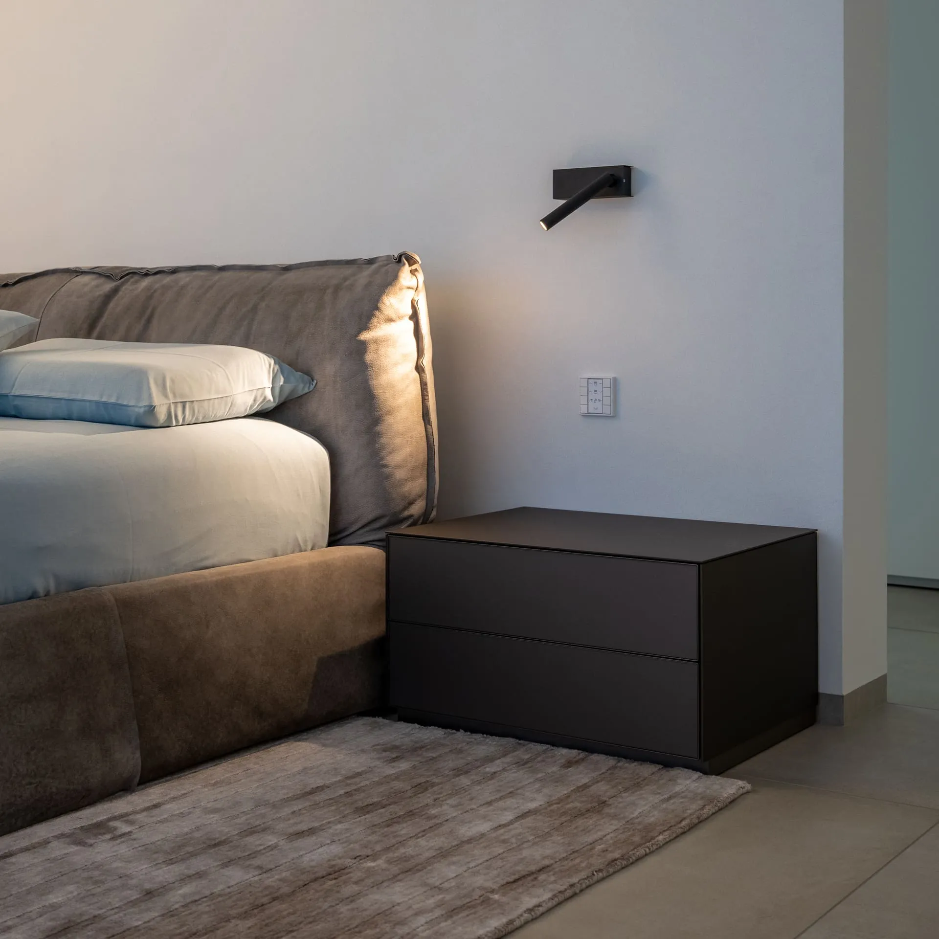 Mira Davide Groppi lamp Self Rimadesio bedside table Paris Slim Baxter bed