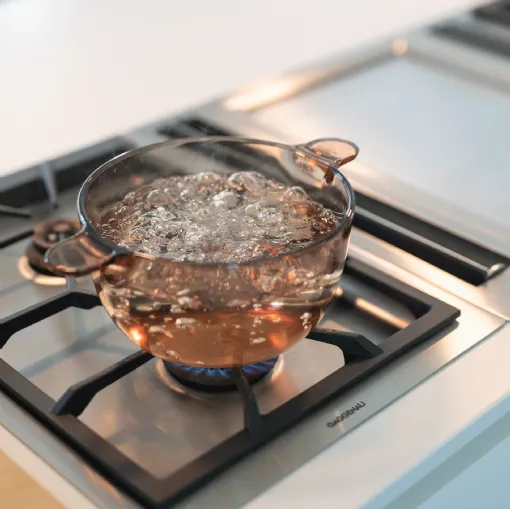 A kitchen with modern lines designed entirely to measure that perfectly combines aesthetic taste and functionality through the choice of high quality appliances. Every detail has been custom designed according to the customer's needs, nothing is left to chance.
