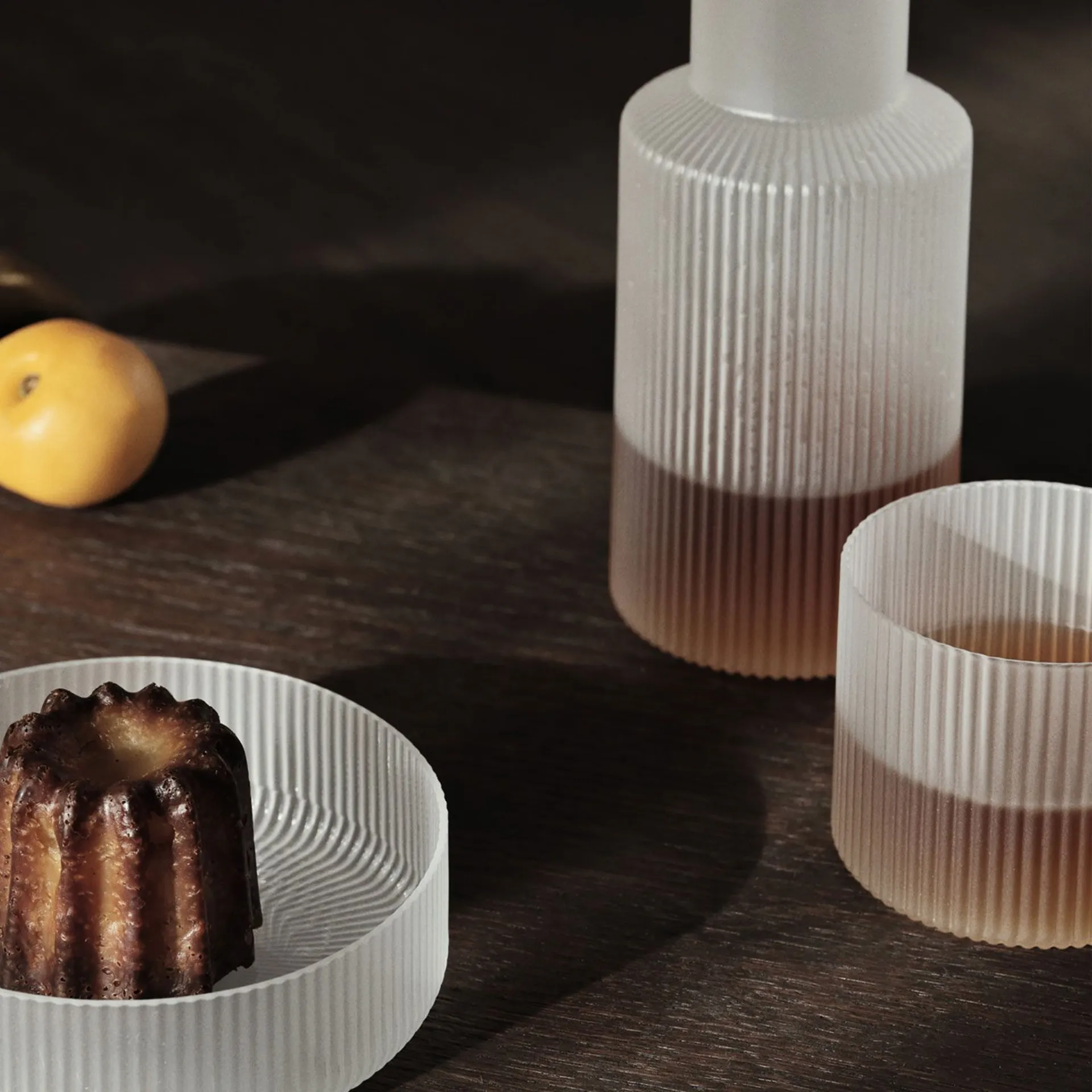 Furnishing accessories personalize home decor by filling the space in a useful way and making it welcoming and beautiful to look at. In store, you can touch the excellence of one of the brand's container models, just like this proposal in the photo. The set of 4 low Ripple glasses by ferm LIVING in the photo will give personality and charm to a room furnished with furniture and accessories with design references. Very versatile and multi-functional, glass containers and coat racks perform different functions: they perfect the practical qualities and aesthetic value of the room. The high aesthetic value compositions of the ferm LIVING brand decorate the habitat by recreating particular furnishing atmospheres.