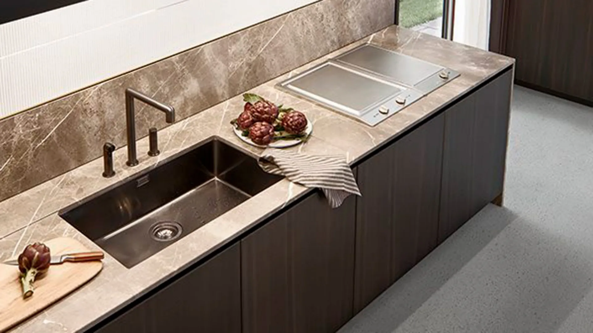 L& # 39; purchase of kitchen furniture potrà depend on the shape of the room, its style and your space requirements, functionalityà and volume. This proposal signed by the well-known and renowned brand è one of the models in matt lacquer: however you can request it in different materials, receiving adequate information regarding appropriate cleaning and maintenance. In our showroom, different types of modern Poliform kitchens await you, in different colors and design materials and in different shapes. In our showroom you can see firsthand our rich line of kitchens with matt lacquered island, the ideal material for the kitchen area. Choosing this Alea kitchen means preparing the spaces by embellishing them, without doing without style.