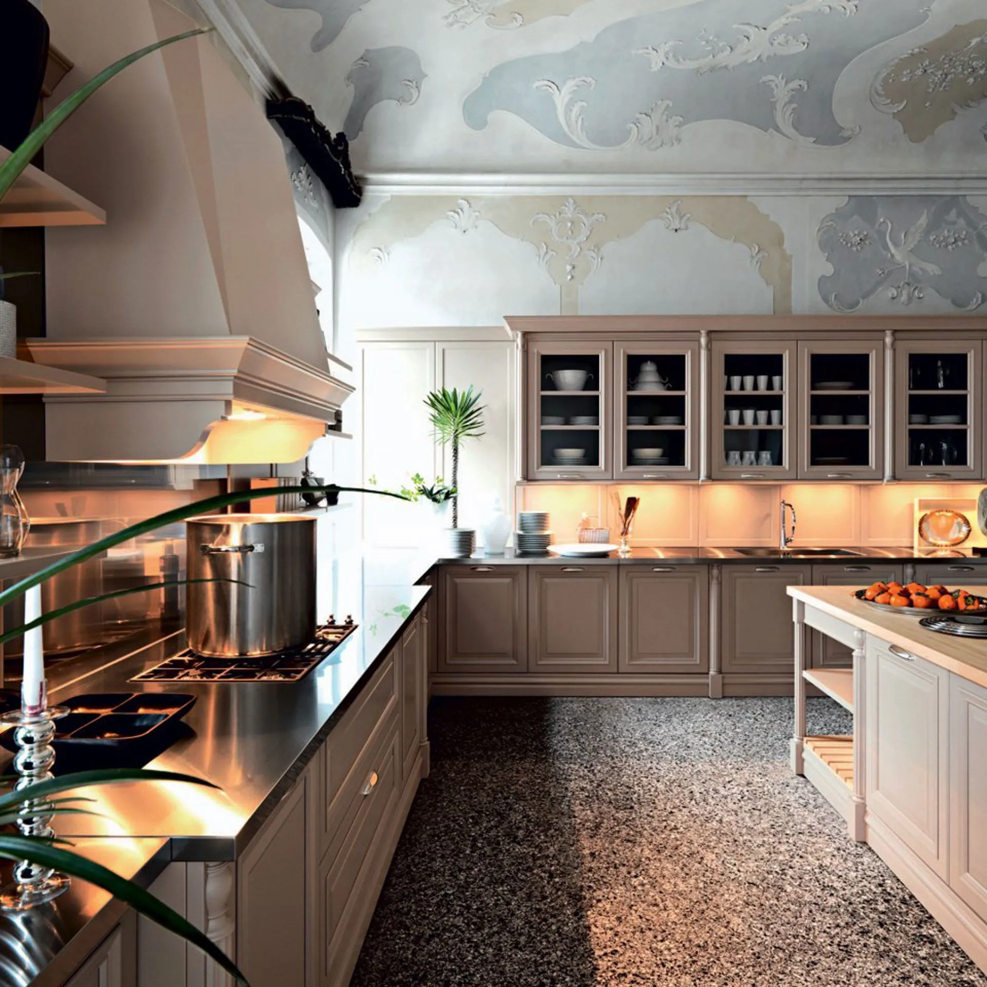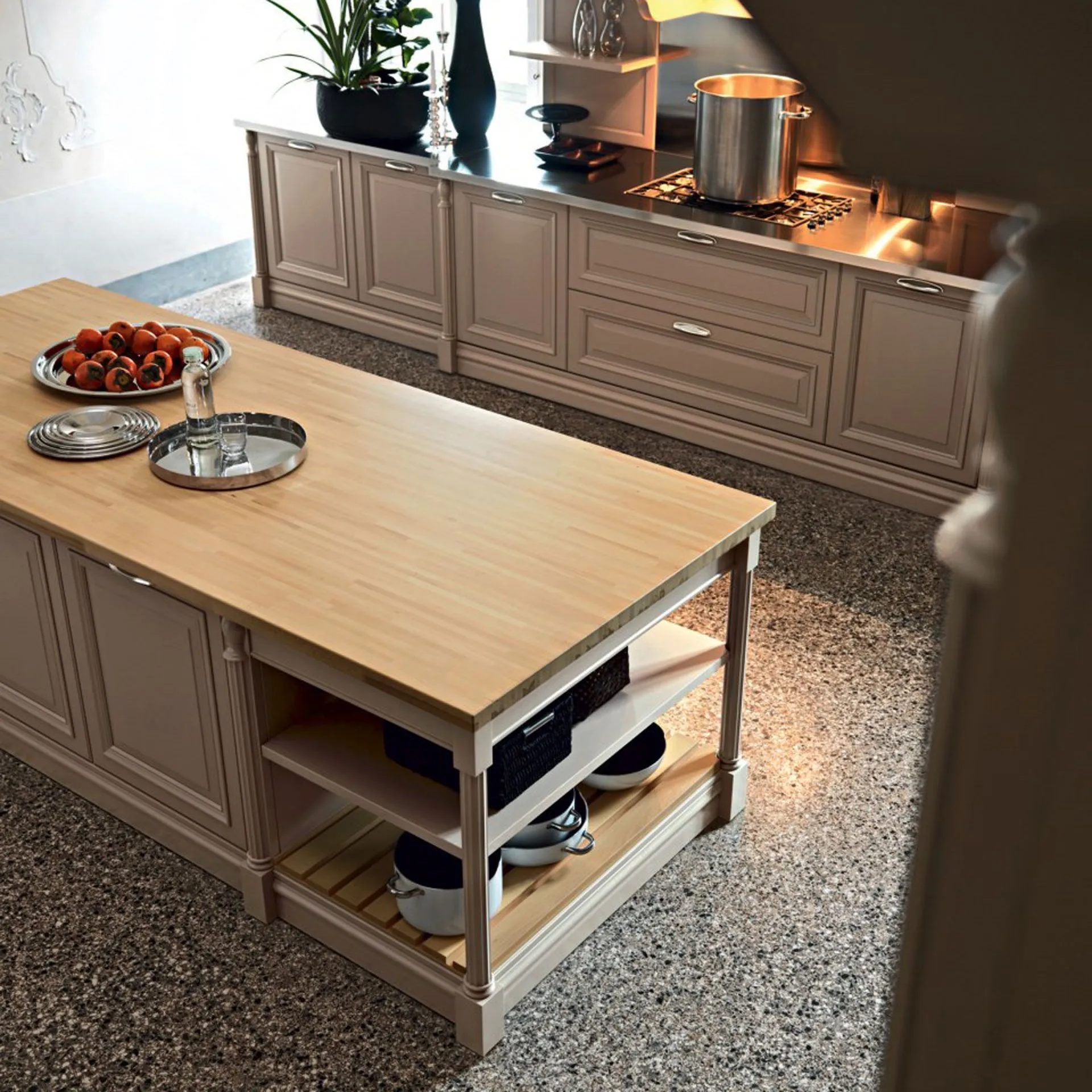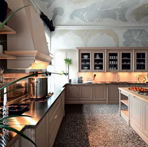 Functionalityà and aesthetics meet in corner kitchens. Cesar's solution è a kitchen made in matt lacquer. It must be remembered that the kitchen è a very popular place, which is why the matt lacquered proposal requires proper maintenance. Often the design style kitchen is presented in matt lacquer. The choice of corner kitchen furniture derives from the conformation of the room o è instead a choice of style. If you like design style, you can buy your corner kitchen from us. Corner kitchens, if well designed, can offer unexpected and never banal results. Deciding on a matt lacquered corner kitchen means not giving up on style. There are several versions of kitchen in the style of design. This Elite kitchen solution in Cesar dove-gray silk lacquer is può have in different materials. Cesar offers the possibilityà to choose from its various types of matt lacquered kitchens.