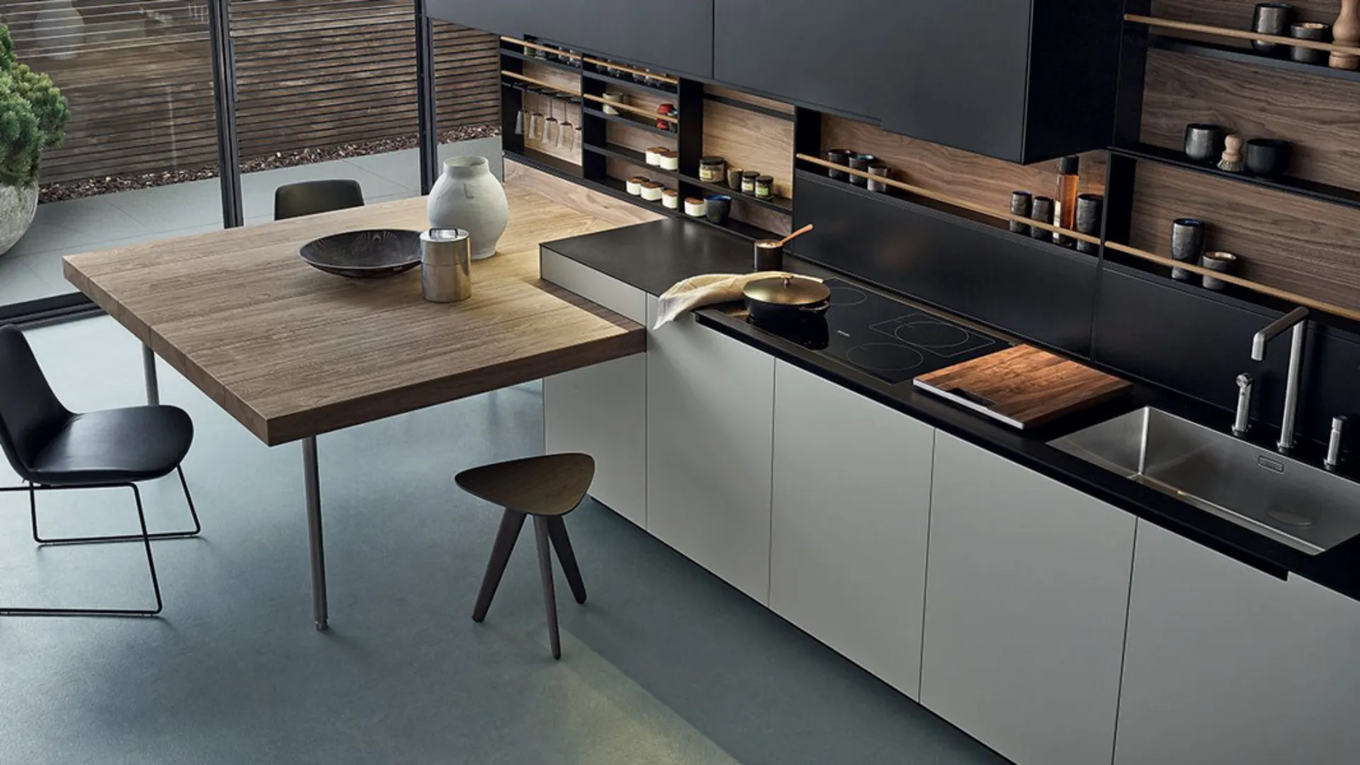 More and moreù appreciated thanks to the perfect optimization of the space they offer, corner kitchens optimize spaces by embellishing them. Visiting us means discovering the più original compositions built by the renowned brand, ideal for modern rooms with great personalityà ;. The Phoenix corner kitchen, a resistant solution with an attractive aesthetic appearance, will prove to be 26-agrave; the best purchase to guarantee you a peaceful dailyà ;. Our modern corner kitchens are offered in various textures and current finishes, easily adapting to different living spaces and environments. Thanks to the functionalityà of this solution in matt lacquer signed by Poliform you will be able to better organize the spaces without diminishing the elegance. We will welcome you in the shop: you can see firsthand the kitchen shown in the photo or discover the other modern solutions.