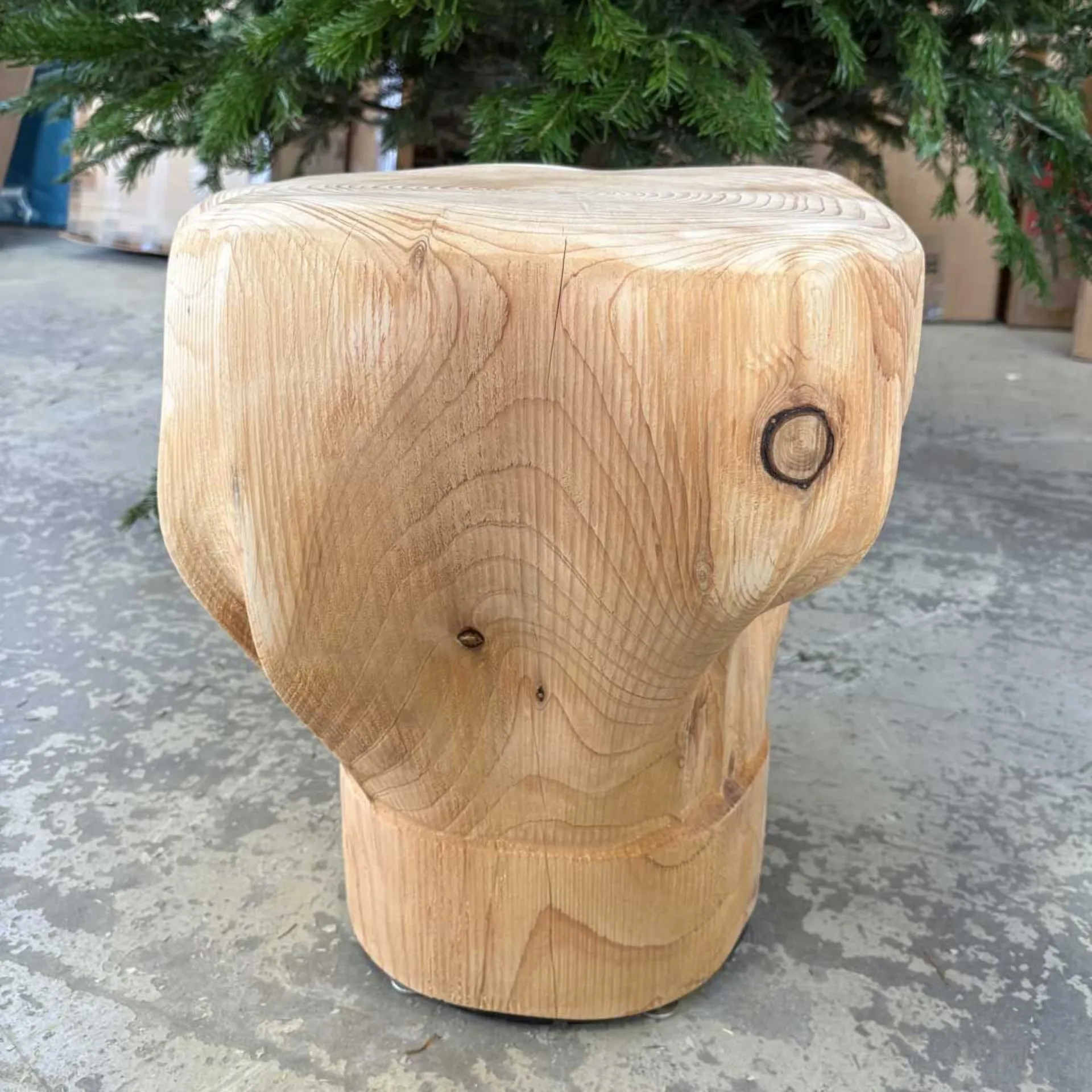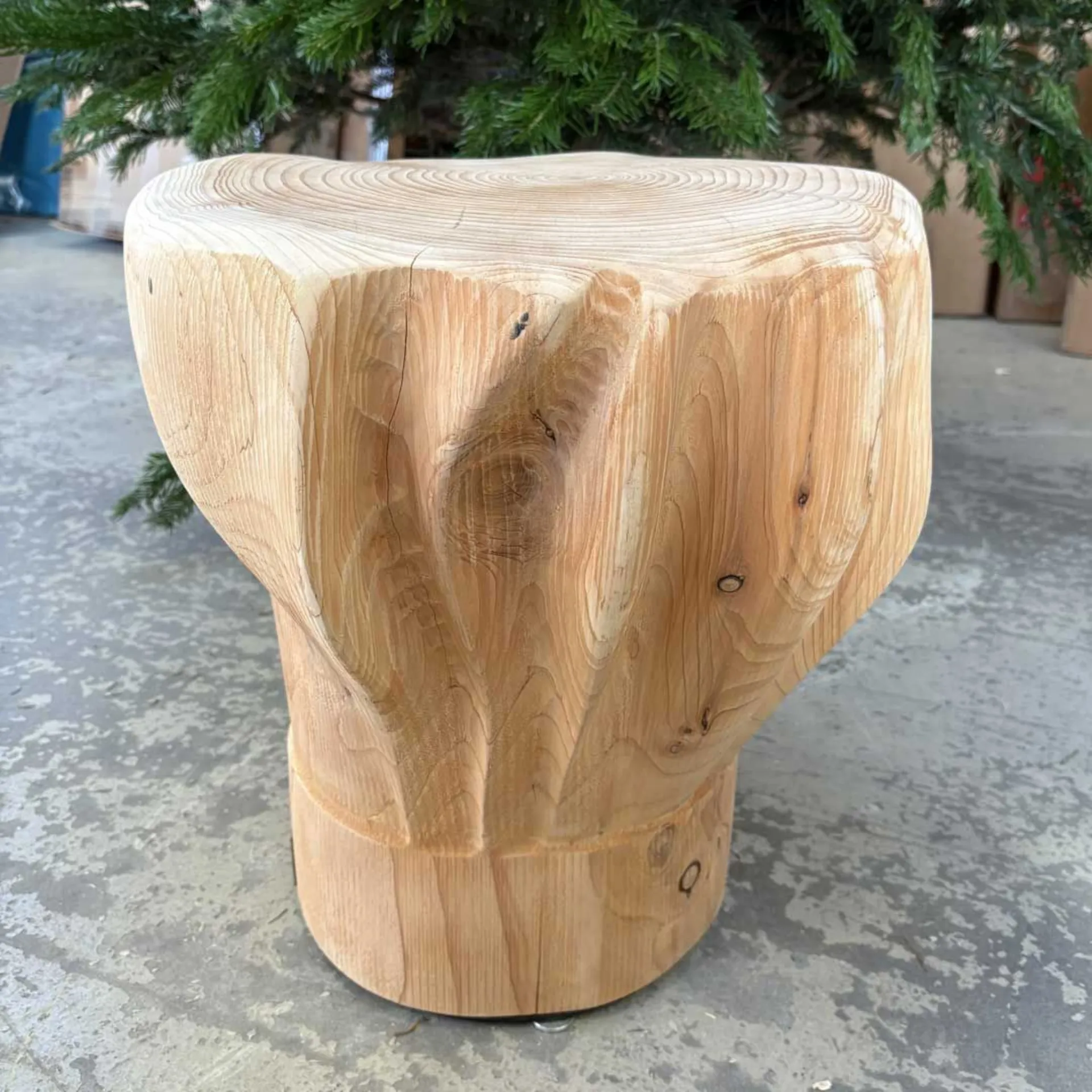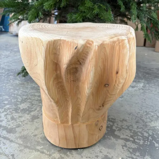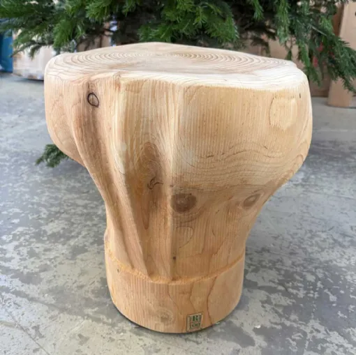Solid cedar wood stools crafted from unique blocks, reproductions of "out-of-scale" chef hats.