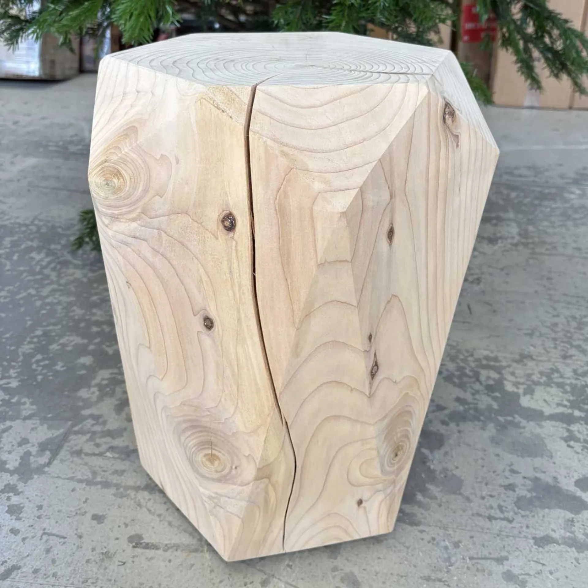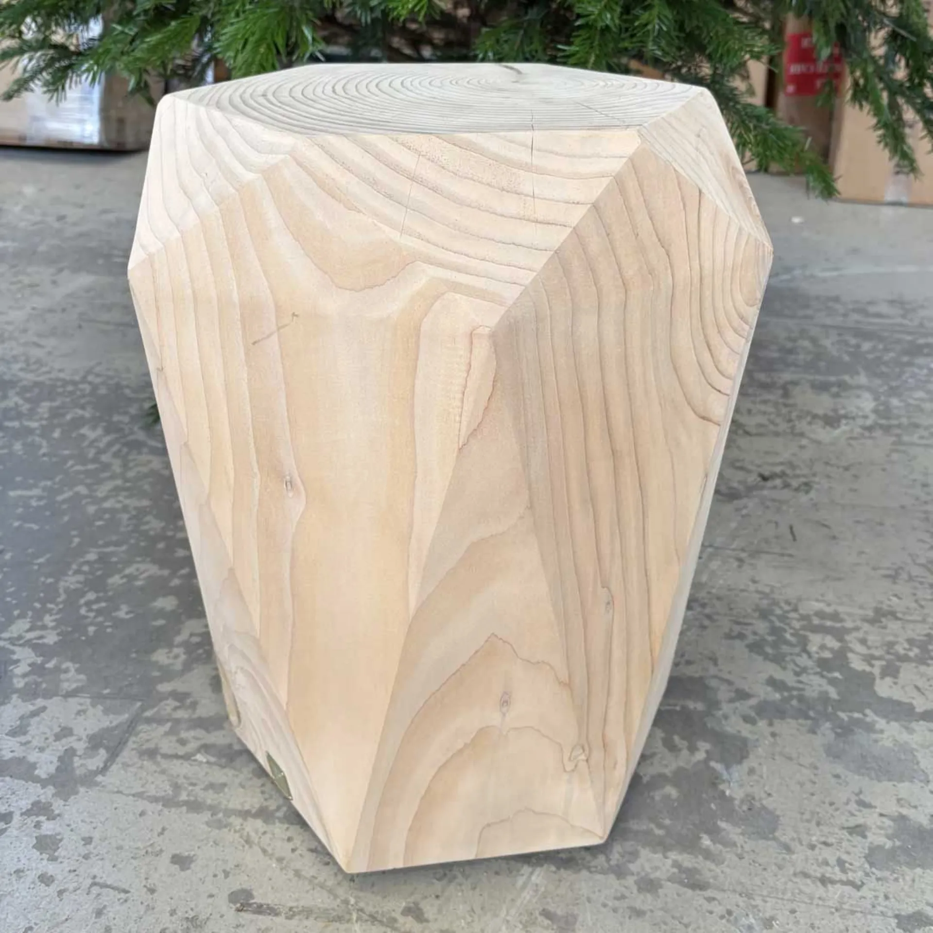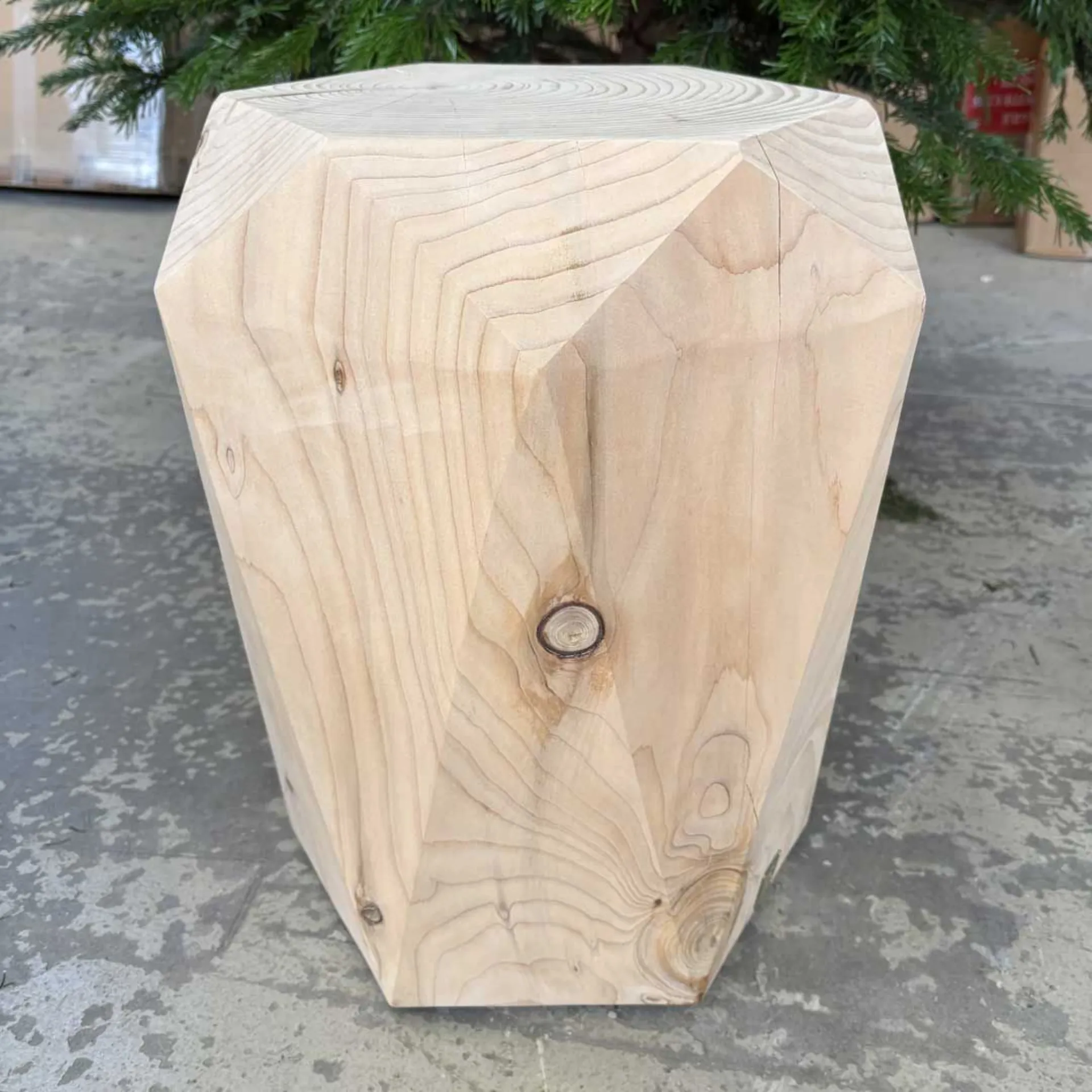 Stool with hexagonal base, developed with a symmetry of facets that recall the eternal elegance of precious stones.